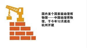 国内首个国家级动漫博物馆——中国动漫博物馆,于今年12月底在杭州开建,届时“动漫之都”杭州又将诞生新的地标性动漫建筑。博物馆计划建在滨江区白马湖动漫广场东侧的岛上,总用地面积3.8万平方米,总建筑面积3万平方米,采用国际领先的设计理念,内含中国动漫历史展区、经典动漫主题展区、临时展区、电子阅览中心、动漫剧场、动漫影院、主题餐厅等多个功能区域,着力打造白马湖生态创意城的标志性建筑。预计2017年建成使用。